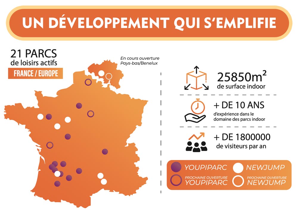 Chez New Jump, nous avons révolutionné l’univers des parcs de loisirs indoor en créant un concept unique alliant fun, sport et convivialité. Avec déjà 21 parcs implantés à travers l’Europe, notre franchise ne cesse de grandir et de séduire petits et grands. En devenant franchisé New Jump, vous intégrez un réseau dynamique et bénéficiez d’un concept éprouvé qui a fait ses preuves