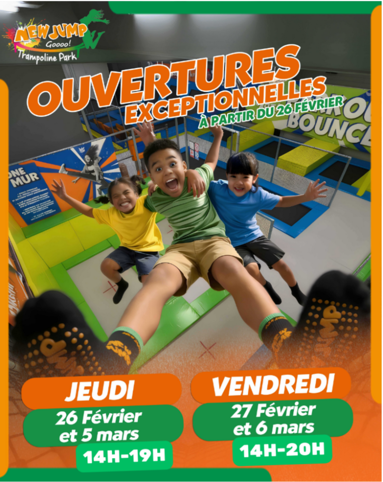 *Mini Jump pour les 2-8 ans uniquement les dimanches et mercredis matin de 10H à 12H